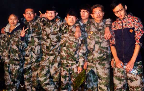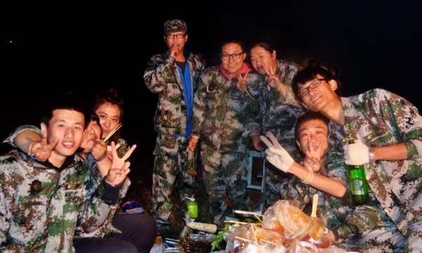 在晚会进行到一半的时候,由2连1341班全体同学表演的一个节目《群舞·小苹果》再次把晚会的气氛带到最高点。随着节奏感强烈的伴奏响起,全体同学无不尖叫、呐喊、鼓掌,然后大家自发地围着篝火一起跳起舞来。