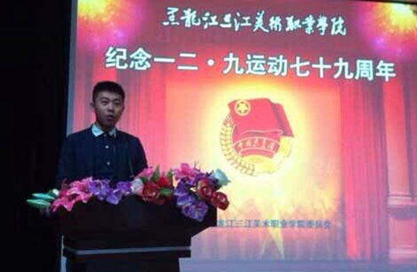 为隆重纪念“12·9”学生爱国运动79周年,进一步践行社会主义核心价值观,让广大青年学子铭记历史,激发爱国主义情感,黑龙江三江美术职业学院团委于12月8日下午在主楼518报告厅召开了纪念“12·9”运动79周年大会。