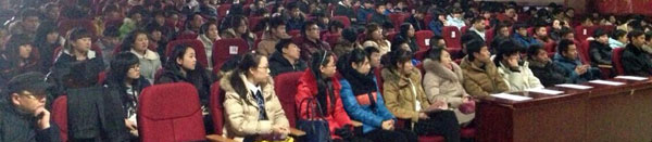 学院党委书记郭金,院长助理、佳木斯校区校长马鸿飞,学院教学科研处长、哈尔滨教学实习基地负责人马兆玉,学院招生就业办主任刘敬霞,哈尔滨教学实习基地教学科研处处长王俊波等领导出席了会议。会议由学院团委书记孙仕昌主持。来自哈尔滨教学基地的数百名学生参加了会议。