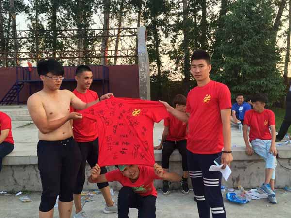 在整个活动中,虽然同学们被分为红橙黄绿蓝5个分队,但是大家相互配合,团结协作,不仅完成了各种训练项目,而且克服了炎热天气等重重困难,接受了一次严峻的考验和锻炼。尤其是在“毕业墙”项目中,队员们徒手攀爬4米高的毕业墙,没有丢下任何一名队友,保证了全员顺利通过,充分体现出了团体合作精神和集体荣誉感。在晚间举行的篝火晚会上,学生们更是多才多艺,营造了热情洋溢、青春焕发的浓厚氛围。