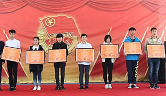学院领导向受到表彰的“十佳大学生”、“先进团组织”代表、“优秀团干部”、“优秀团员”和团体操获奖代表颁发了获奖证书。