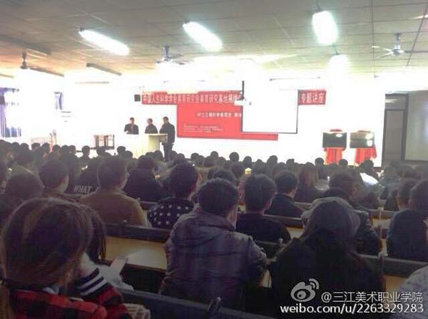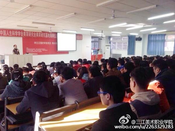 当日下午4时许,此次对三江美院美育教育工作具有重要意义的美育研究基地揭牌仪式和美育专题讲座活动在悠扬、热烈的乐曲声中结束。