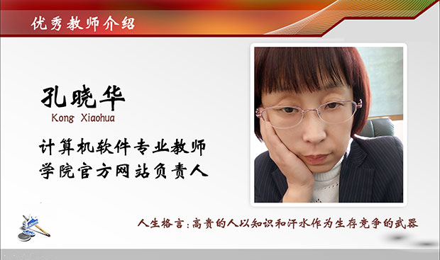 孔晓华同志,三江美院佳木斯校区教师,学院计算机软件课程骨干教师,学院官方网站负责人。她知识底蕴深厚,业务精湛,专业功底过硬,工作能力极强。在承担AutoCAD、3ds max、Photoshop等专业制图软件和Premiere非线性编辑等软件教学工作的同时,还独立承担学院官方网站的设计制作与更新维护工作,既负责网站栏目策划,又兼美工设计师,还是程序员。对待教学工作,她精益求精,精心备课,认真授课,耐心辅导,努力做学生的良师益友。网站工作细致繁琐,对技术性、艺术性、时效性都有一定要求。她常常牺牲业余休息时间加班加点,以保障学院新闻通讯及招生宣传等信息的及时有效传播。在临时性工作和寒暑假值班方面,该同志做到了识大体顾大局,牺牲了很多的休息日,工作成绩斐然。