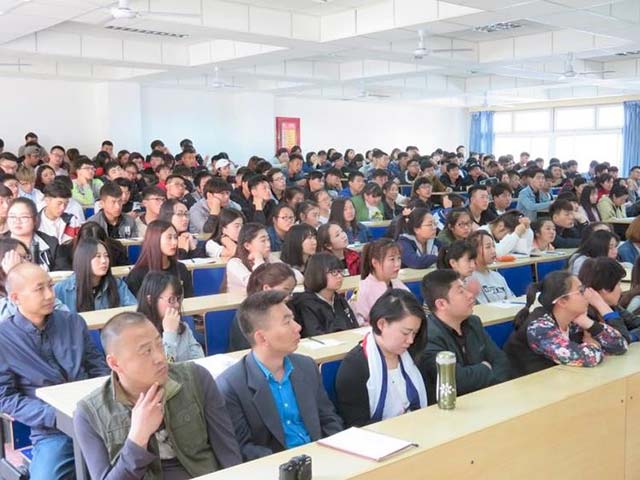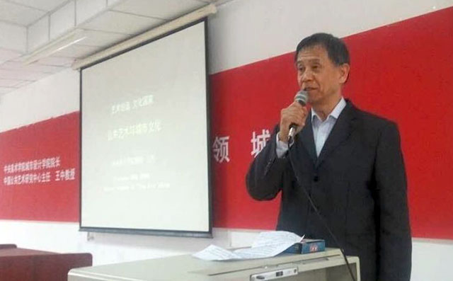 王中院长是我国公共艺术学科研究的领军人物,他讲授的公共艺术专题讲座,展现了宽广的现代国际视野和深厚的中华文明历史底蕴,既有对中外优秀公共艺术作品的介绍和评论,又有对当下出现破坏生态和文化遗产个别现象的辛辣批评,面对讲座听众的不同程度需求,王中教授的演讲深入浅出,言简意赅,既有从国际到国内案例的旁征博引,也有基于学术角度对公共艺术理论深刻而简练的高度概括,特别是他作为国家级著名艺术专家在指导实施诸多城市公共艺术设计重要项目的亲身实践中所经历的许多生动事例,引起了现场听众的共鸣和深入思考。两个半小时的公共艺术讲座,王中教授一直坚持站着演讲,创造了强大的气场,加之讲授风格幽默而风趣,令现场的听众们为之深深吸引、笑声、掌声不断。