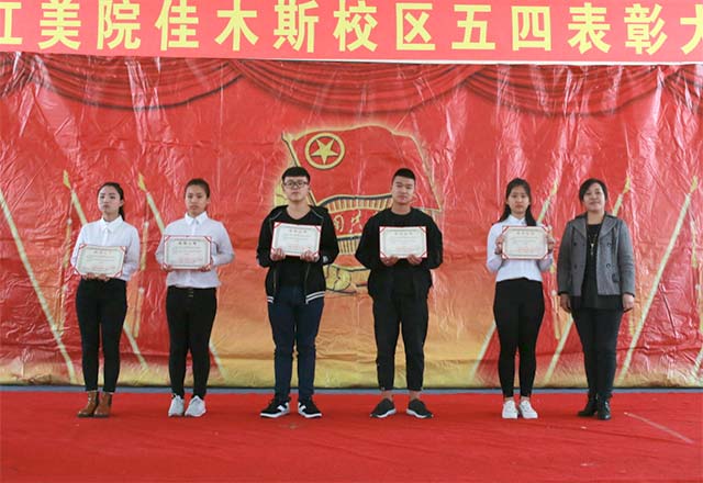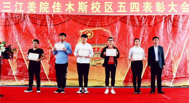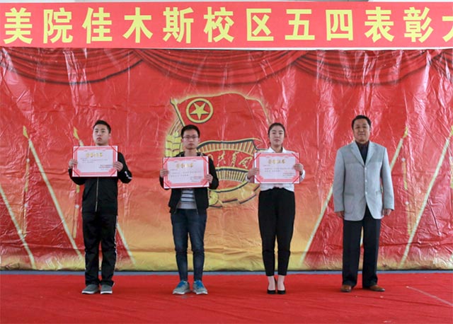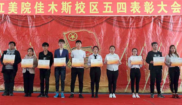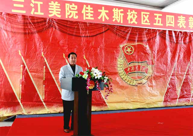 “我们是五月的花海,用青春拥抱时代,我们是初升的太阳,用生命点燃未来.....”4月28日,日月湖餐厅人声鼎沸,团歌飘荡,黑龙江三江美术职业学院佳木斯校区师生代表在这里隆重集会,举行佳木斯校区“五·四”表彰大会。学院领导党委书记、常务副院长郭金教授;院长助理、教务处处长、哈尔滨教学实习基地主任马兆玉教授;院长助理、党委宣传部长、学生处处长、佳木斯校区校长马鸿飞同志;院长助理、院办公室主任张雨祥同志等同志参加了此次会议。