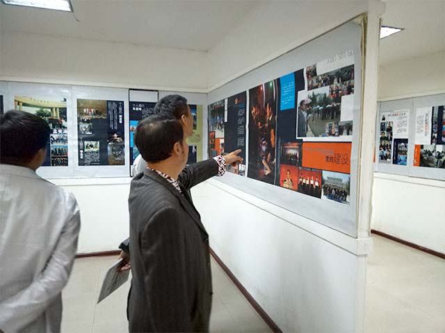 汇报和座谈会后,检查组一行饶有兴趣地参观了学院图书馆、档案馆、美术馆和校史馆,对学院坚持教育改革、着力加强党建工作的37年风雨历程和丰硕的特色办学成果啧啧称赞。