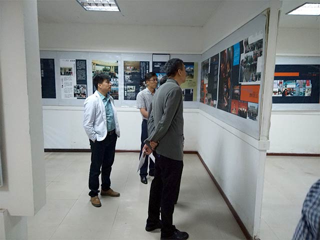 最后,检查组一行人驻足205广场,详细地查看了党建图板和教育活动宣传栏,并远眺日月湖波光柳影,对学院的环境和整体发展非常满意。
