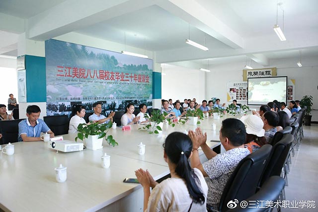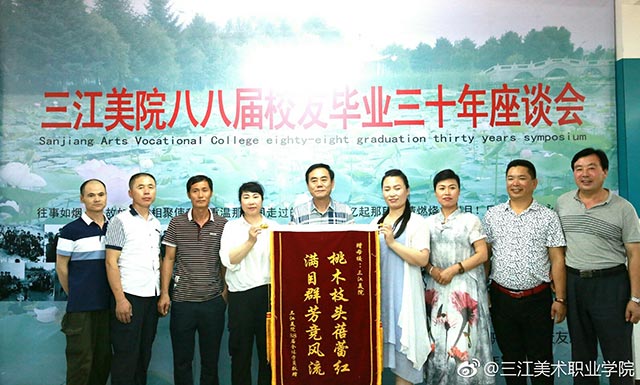 黑龙江三江美术职业学院的前身是佳木斯市三江美术学校。这次阔别30年重回母校的八八届毕业生就是当年在三江美术学校就读过的学生代表。他们当中有的毕业后在家乡办起了美术班,有的在当地中小学担任美术教师,还有的在企事业单位从事宣传工作。30年后的今天,他们当中的绝大多数人都已功成名就,有的成为当地有名的书法家,有的成了身价不菲的企业家,还有的成为党政机关干部。