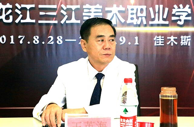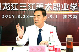随后,三江美院院长王英海教授为大家做了专题讲座。他首先回顾了三江美院的历史沿革,介绍了三江美院如何从小到大、从弱到强,一步一个脚印的发展到今天。他说,三江美院有今天,成果来之不易,荣誉来之不易,大家要珍惜现在学院所提供的发展平台,热爱学生,热爱学院,热爱专业,努力工作。
