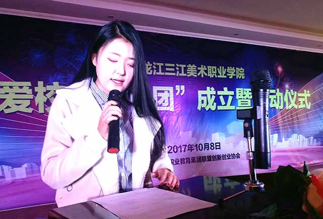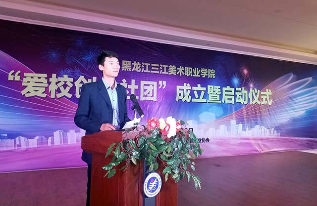青山转苍翠,秋水日潺环。秋高气爽的金秋十月,到处是一派收获的欢乐和喜悦。2017年10月8日,黑龙江三江美术职业学院哈尔滨校区(教学实习基地)大礼堂人头攒动,热闹异常。“爱校创业社团”成立暨启动仪式在这里隆重举行。