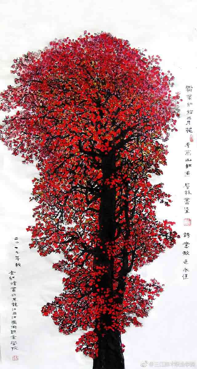▲ 金红炜中国画作品《诗意秋色永恒·霜叶红於二月花》获高校教师组二等奖