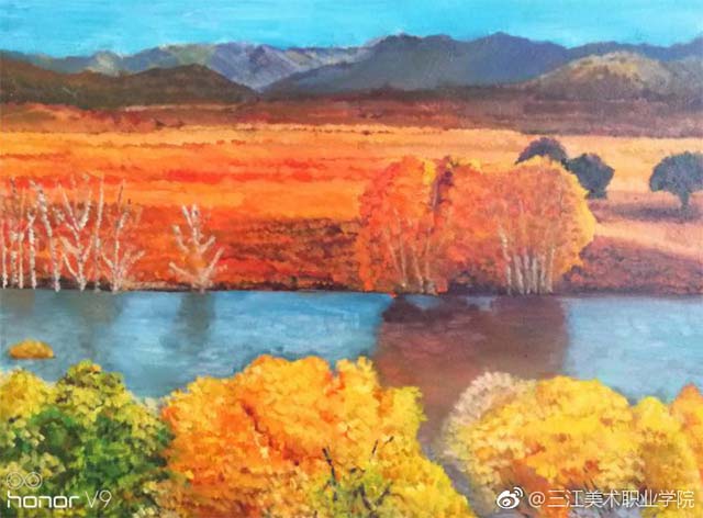 ▲ 王惠琪油画作品《乌斯浑河的深秋》获高校教师组三等奖