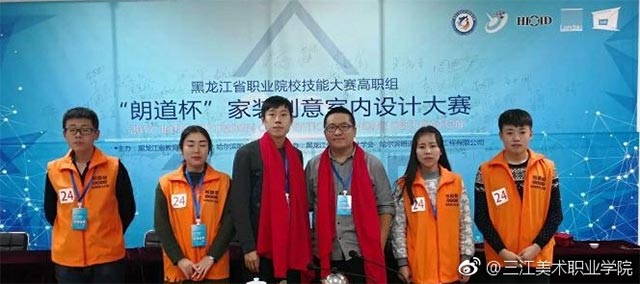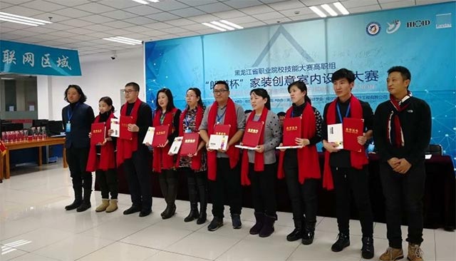 本次大赛由黑龙江省教育厅主办,哈尔滨职院承办,黑龙江省室内设计学会协办并提供技术支持。大赛以“家装创意室内设计”为主题,共有来自省内近20余所职业院校的30余组参赛选手参赛,最终评选出一等3名,二等奖6名、三等奖8名、优秀奖若干名。 我院环艺工程系室内设计专业教研室为了参加这次大赛,进行了认真的组织和精心选拔,挑选1541班侯婷婷同学为参赛组组长,环艺工程系单填城、代峰两位老师为指导教师。期间代峰老师、单填城老师多次对参赛学生悉心指导,侯婷婷、周姚、孟萍瑶和关晓霞等我院4名学生从众多参赛选手中脱颖而出,均获得三等奖。孙明雪、杜丽楠、陈显君和苑士龙等同学获得优秀奖,单填城老师获得优秀指导教师奖,侯婷婷同学代表我院到颁奖现场领取了荣誉证书和奖品。
