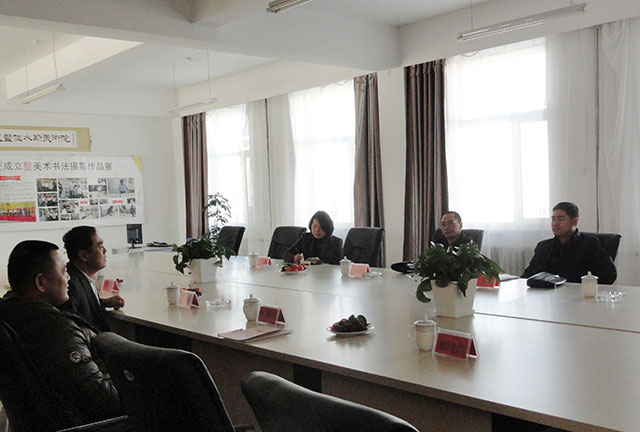 调研组一行首先听取了学院院长王英海教授关于黑龙江三江美术职业学院的办学历史、办学成果、发展目标以及筹建龙美高中的出发点和有利条件的工作汇报。王英海院长在汇报时说,龙美高级中学的成立,就是为了弥补黑龙江省尤其是黑龙江中东部地区高中教育资源的匮乏,形成公办和民办齐头并进、携手发展的良性态势,更好地满足我省东部地区人民群众的教育需求。筹建中的佳木斯龙美高级中学将与省内重点名校合作,拟在三年内达到在校生6000人的规模,其中2018年秋季招生1680人。形成以普通高中教育为主、特色教育为辅的基本架构,努力打造黑龙江省高中教育的一大亮点。