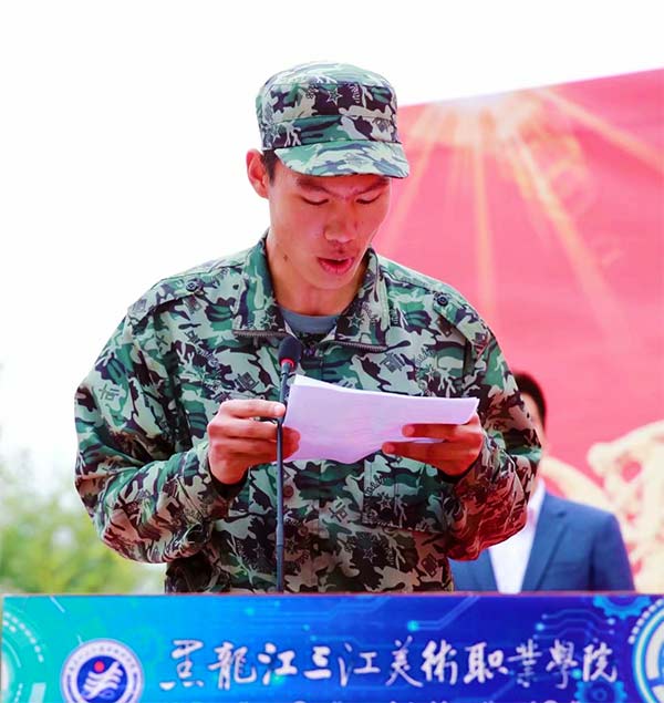 龙美职教集团理事会理事长、黑龙江三江美术职业学院院长王英海教授进行军训总结讲话,他谈到:13天以来,军训团队精心组织、严格施训,同学们从整理床铺,打扫卫生,站队、走路,用餐等最简单的生活技能和行为举止学起做起,接受规范的礼节礼貌和行为习惯培训,基本完成了预先设定的训练内容。在汇报表演中,同学们军事动作娴熟规范,汇报表演整齐有力,充分展示了美院学子良好的精神风貌和本次军训的丰硕成果。在军训中,你们学会了坚强,学会了隐忍,学会了勇敢,学会了担当,取得了丰硕成果,这是全体承训教官辛勤汗水的结晶,也是全体辅导员、老师和同学们共同努力的结果。在此次军训活动中,计划周密,组织得力、态度端正,训练认真、人文关怀、体现亲情、严训细抓,收效明显。