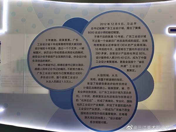 黑龙江三江美术职业学院理事会理事长、学院院长王英海教授表示:三江美院与广东工业设计城及相关设计类企业进行深层次校企合作,共同创办工业设计暨产品造型类相关专业,将有效实现校企双方的教学→研发→生产→市场的成果转化。通过产教联盟,把学校专业教学资源、师生设计创新成果融入到企业新产品的研发与生产线上,促进了产、学、研、用有机结合,真正实现校企融合发展。同时,通过校企合作,构建课堂+车间、作品+产品、工作室+生产线、初创企业+联盟集团的创新创业校企共同体,为学生提供发展机遇,实现创新创业梦想,创新教育教学成果。