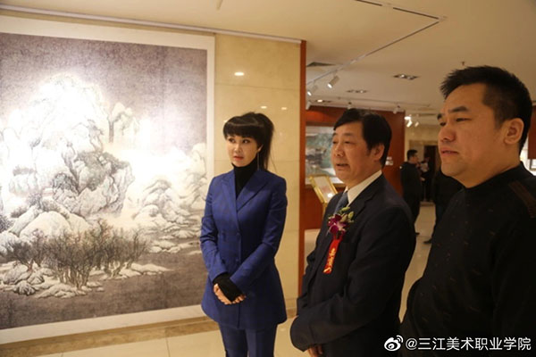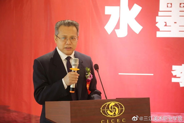 金院长代表主办单位之一三江美术学院再次感谢中国国际文化交流中心各位领导对展览和策展工作的指导,感谢中国国际文化交流艺术馆的大力支持协助!感谢对本次展览给予大力支持的各位领导、专家和各位朋友们!祝福2020年新年伊始举办的本次画展取得圆满成功!