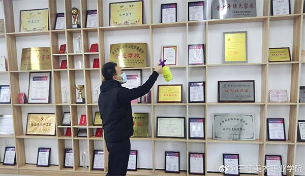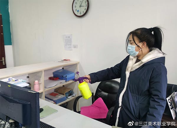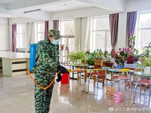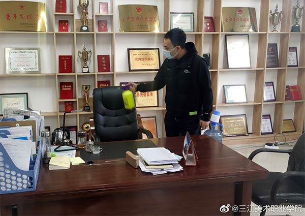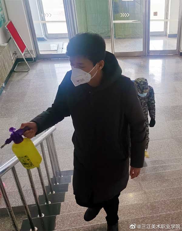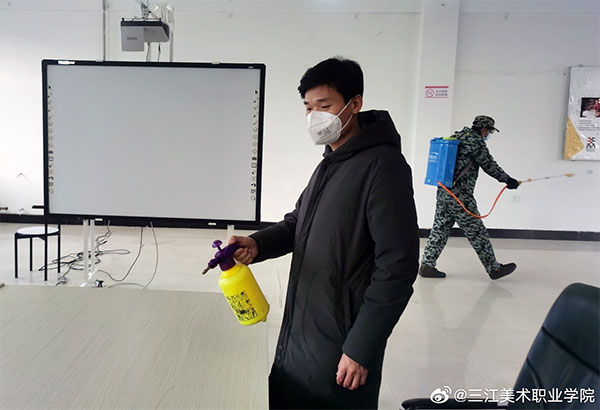 2月3日,按照学院“关于做好疫情防控加强校园安保工作的通知”和“党委书记院长碰头会”精神要求,学院党委组织部长、学院住校值班领导孙仕昌带领工作人员对学校教室、寝室、图书馆、会议室、实验室、办公室、音体美等专用教室、食堂等场所进行通风、消毒。尤其对学院值班室、学生公寓、教师公寓等重点区域,进行了重点消毒。