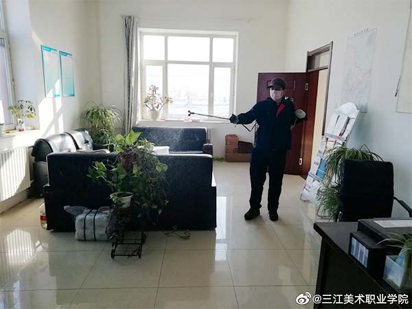 为有效做好学院新型冠状病毒感染的肺炎疫情防控,三江美院哈尔滨教学实习基地坚持对基地假期值班人员、防控工作人员等岗位所涉公共空间进行每日防疫消毒工作。