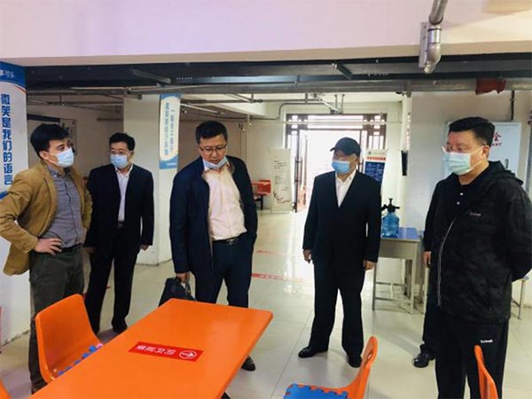 高铁春处长一行考察了学院校园管控情况,重点查看了食堂、宿舍楼、校园仓买等场所防控措施落实情况,听取了学院领导关于疫情防控及开学准备工作的汇报,详细了解了防疫物资准备、医务室及隔离室的设置、错峰用餐制度、校园仓买生活用品的售卖、快递邮件消杀工作等方面情况。