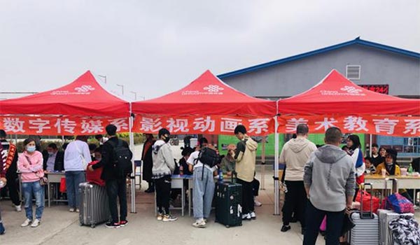 沐浴在热情亲切的氛围中,新生和家长们备受感动,进入校门,便如同回到家。美术教育系一位新生说:“今天雾大,路面湿滑,行李不好搬,多亏了热情的师兄师姐们。他们为迎接我们都已经付出很多辛苦了,但是还不辞辛苦地帮助我们,真的很暖心。”影视动画系一位新生表示,自己进校时天色渐晚,迎接她的老师和师兄师姐热情的帮她提行李,询问她有没有吃晚饭,让她很感动。