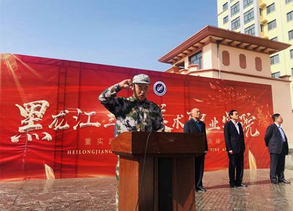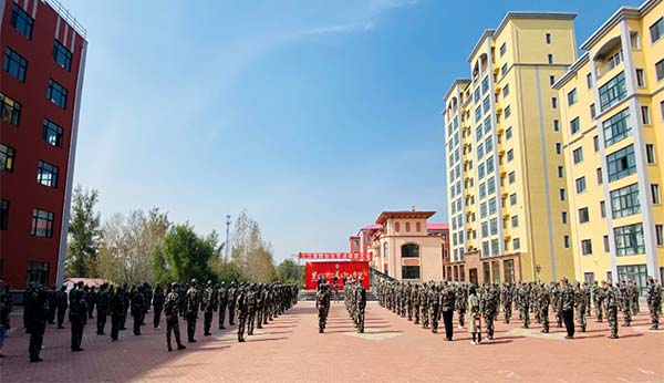 2020年9月24日上午,学院2020级第二批新生军训动员大会在哈尔滨教学基地操场隆重举行。学院理事会理事长、院长王英海,副院长鞠剑峰、梁晓勃,学生处、办公室主要负责人,2020级第二批全体新生参加了大会。大会由学院党委副书记、学生处处长马鸿飞同志主持。