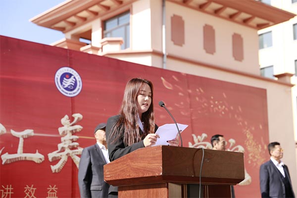 学生代表发言完毕,由学院理事会理事长、院长王英海教授发表讲话,他讲话的题目是《生逢盛世 我辈当努力前行》。