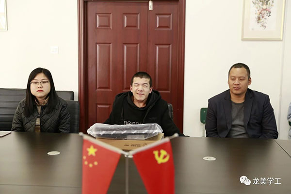 首先,由滕颖慧老师宣读对扶残助学对象袁吉祥同学的资助决定,后由王少青书记为袁吉祥同学赠予笔记本电脑一台并发表讲话,他说:今天的扶残助学活动是学院激励同学们端正理想信念、做奋发有为青年的一次有意义的活动,首先表示对袁吉祥同学入学以来的优异表现表示肯定。可能因身体情况,生活行动有诸多不便。但却有着坚强的意志毅力,凭借着自己的努力在学业上有很大进步。希望袁吉祥同学戒骄戒躁、谦虚努力、珍惜学院的资助,争取有更大的进步。