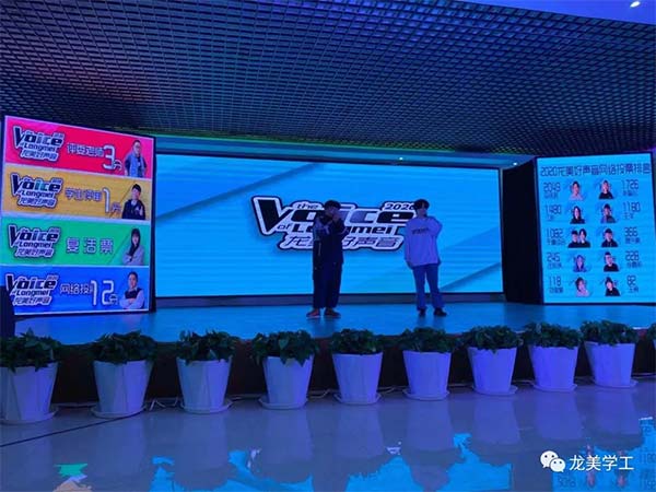 上午10点20分龙美好声音由主持人靳祖业同学、李佳溢同学宣布评审规则后,伴随着评委单填城老师带来的歌曲《光辉岁月》激动人心的节奏、慷慨激昂的歌词,瞬间点燃了全场的气氛、鼓舞了参赛同学的信心!音乐声停止后,激动人心的氛围并没有因此而消减,20届龙美好声音总决赛正式开始。
