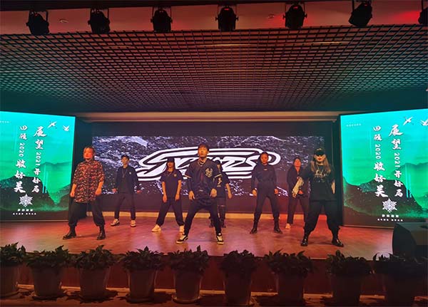 学院领导和全体师生带着对新年的美好期盼欢聚一堂,共度良宵。元旦晚会在学院舞蹈社团的精彩开场舞《HIP HOP》中拉开序幕。四位穿着盛装的主持人走上舞台,对到场的各位领导、老师、同学们表示热烈的欢迎,随后在全场观众热烈的掌中宣布“三江美术职业学院2021年元旦晚会”正式开始。