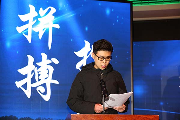 2018级专升本班级的赵宇鹏同学代表全体三江美院学生在大会上发言,他说:“专升本的生活枯燥无味,我们每天重复着一样的事情:教室、寝室、食堂,三点一线;但走过之后感受更多的是充实;每天有所得、有所获。身边是一群斗志昂扬、活力四射,对将来的美好生活充满向往并为之努力的同学们。看着他们,感觉天很蓝,路很宽。疲倦的时候看看他们,顿时又充满激情。虽然有时会被一些困难围绕,但学习的主旋律一直没有更改。”