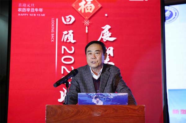 学院理事会理事长、院长王英海教授在会上发表讲话。王英海院长首先从“线上教学”、“教学成果”、“教育成果”、“创业就业”四个方面对2020年进行了简要回顾。随后又从“实习就业”、“教学改革”、“专业建设”、“创新创业”、“国际合作”五个方面对2021年进行了规划与展望。