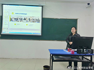 在会上进行汇报的任课教师分别是:美术教育系教师郭勇、崔夺,环境艺术工程系教师刘晓博,影视动画系教师徐春雷,数字传媒系教师石莹莹,信息管理学院教师秦悦。