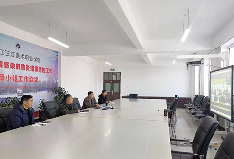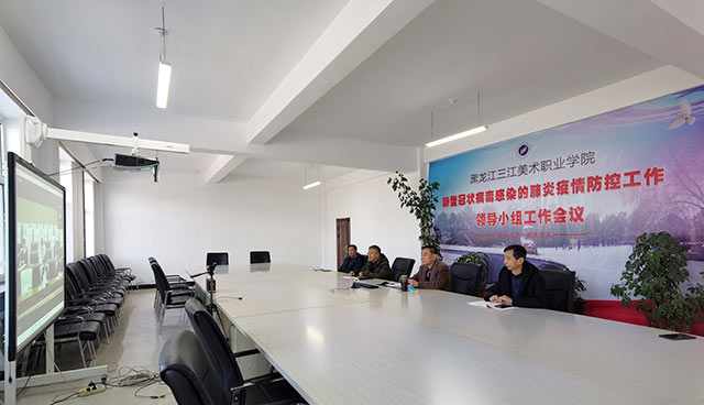三江美院党委书记王少青、院长王英海在校本部分会场参加会议。