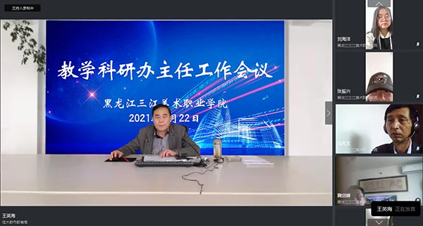 2021年2月22日上午,黑龙江三江美术职业学院教学科研办公室主任会议以钉钉视频的形式召开。学院领导王英海、鞠剑峰、金红炜、马鸿飞出席会议,教务处处长马兆玉主持会议。