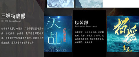 公司业务涉及影视后期制作、影视创意制作、企业形象策划、媒体推广发布、商业广告、媒体包装、企业视频管理等领域,现已成为集影视剧剧本创作、投资策划、前期拍摄、后期制作、发行为一体的影视公司。公司近几年制作近百部影视剧作品,三百部各类宣传片及特技动画包装,服务领域遍及政府、金融、IT等市场,实力脱颖而出,与中央台、北京电视台、湖南电视台、中国教育电视台等卫视及爱奇艺、优酷等视频网站均有深度合作。