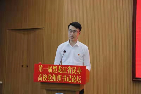 10名黑龙江省民办高校党建“示范高校”、“标杆院系”和“样板支部”的党组织书记做了交流发言,其中有9所本科院校(系)、1所高职院校。这1所高职院校就是黑龙江三江美术职业学院。