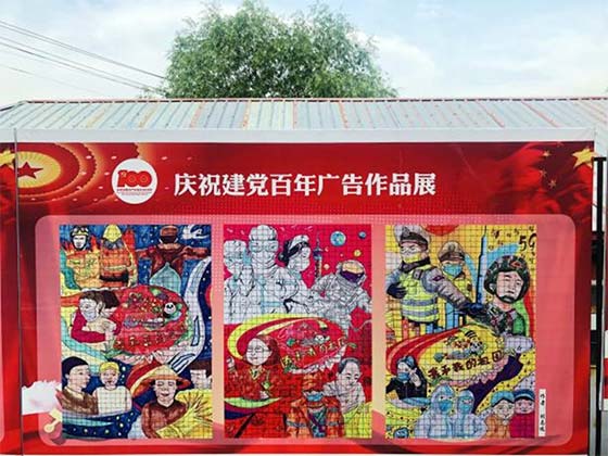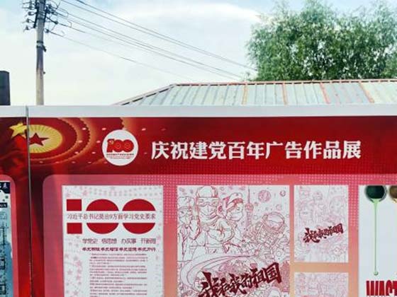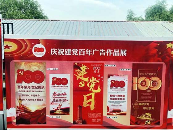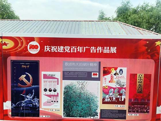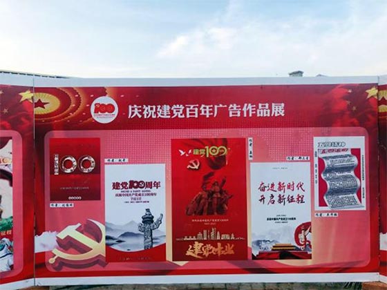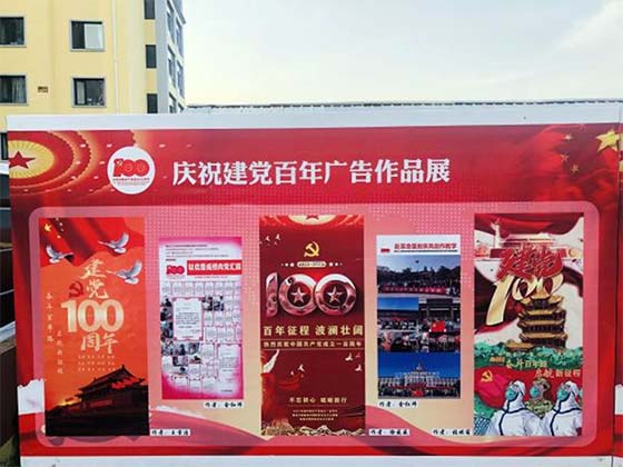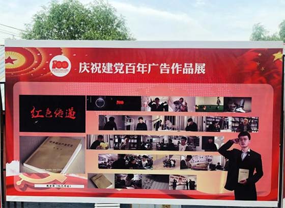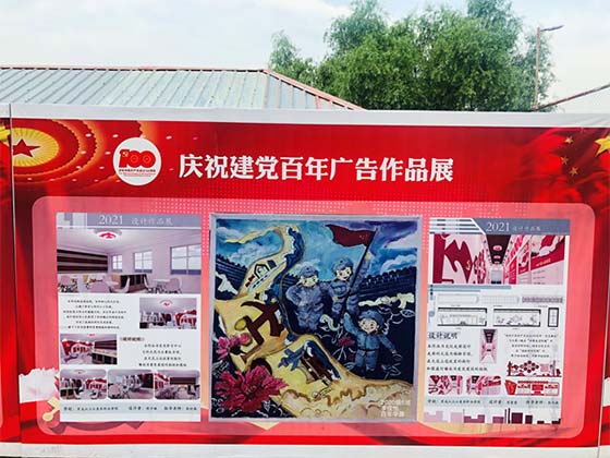 7月1日,为深入开展党史学习教育,庆祝中国共产党成立100周年,我院在校园篮球场北侧学生休闲区举办“庆祝中国共产党成立100周年广告作品展”。青年学子们用自己的创意和满腔激情赓续红色基因,礼赞党的百年风华。