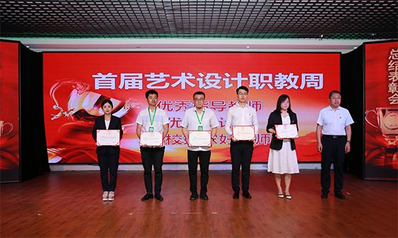 为学生颁奖后,王英海院长宣布了我院对首届职教周活动中涌现出来的优秀教师进行表彰的决定。美术教育系教师郭勇、朱振宇和数字传媒系教师李彤等3人获得“优秀指导教师奖”,环境艺术工程系宫青松老师获得“优秀设计师奖”,信息管理学院王辰宇老师获得“爱校如家好教师”荣誉称号。学院党委书记、省政府督导专员王少青同志为以上5位优秀教师颁发了奖励证书。