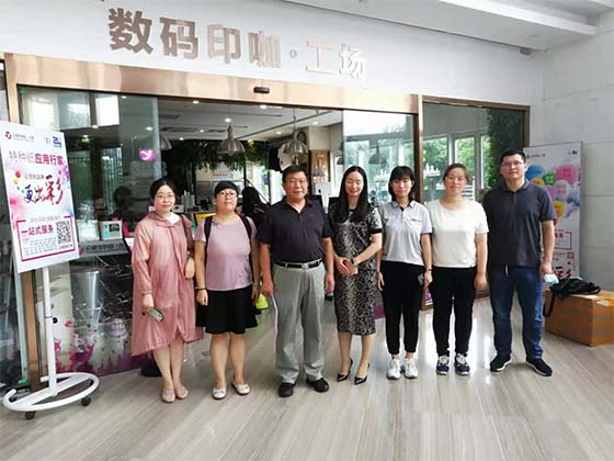 2021年7月22日,黑龙江三江美术职业学院北京教学实习基地党支部书记丁春生,专业教师李红梅、王康、吴琼、葛霖一行五人到亮雅轩快印连锁百子湾门店进行参观考察。