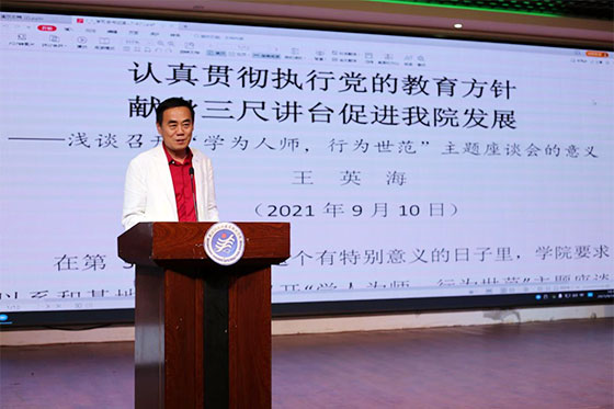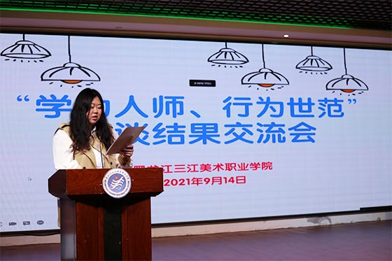 9月14日下午,黑龙江三江美术职业学院在哈尔滨教学实习基地演播厅就9月10日全院“学为人师、行为世范”主题座谈会体会展开深入交流。