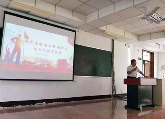 在给全体教工讲授党课过程中,王少青书记从走进革命圣地西柏坡开始,谈参观感悟、谈收获体会,深刻阐述西柏坡精神的丰富内涵,要求大家开展“两个敢于”(即敢于斗争,敢于胜利的革命英雄主义精神)教育,发扬斗争精神、增强斗争本领,不怕困难,不畏艰险;坚定理想信念、牢记初心使命,保持艰苦奋斗的优良传统,积极做好新时代思想政治工作,增强实现中华民族伟大复兴目标的信心,凝聚实现中华民族伟大复兴目标的力量。