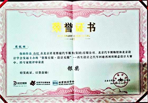 2021年9月28日,北京汽车博物馆宽阔的新闻发布厅内洋溢着喜庆的音乐和热烈的气氛,由北京设计学会、北京祥龙博瑞汽车服务(集团)有限公司和北京汽车博物馆发起主办的2021“资源有限·设计无限”——再生设计之汽车回收再利用创意设计大赛颁奖仪式暨研讨会在这里举行。