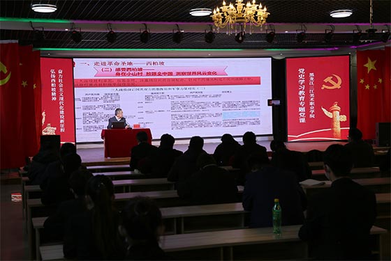 12月3日下午,学院党委书记王少青同志以《弘扬西柏坡精神,奋进社会主义现代化建设新征程》为主题,为全院广大党员和教职工上了一堂党史学习教育党课。