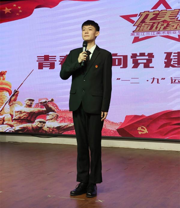 为弘扬伟大的爱国主义精神,学习一二九运动中青年学生勇立潮头、不怕牺牲、敢为天下先的英勇气概,传承中华优秀传统文化,坚定青年学生永远跟党走的决心,锻炼提升大学生综合素质,三江美院于12月7日下午通过线上线下相结合的方式,举办了以“青春心向党,建功新时代”为主题的演讲比赛决赛。