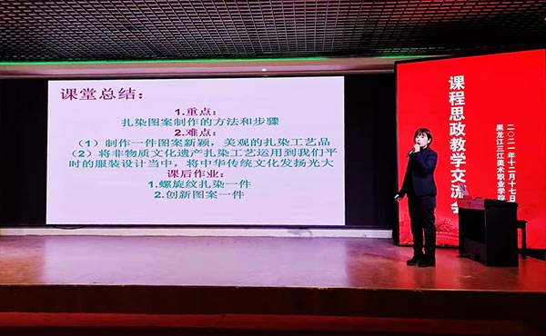 为了全面深入贯彻习近平总书记关于教育工作的重要论述和全国教育大会精神,落实《全国高等学校课程思政建设指导纲要》,进一步推进课程思政教学改革,提高广大教师做好课程思政教学工作的积极性和主动性,发现课程思政教学中的好经验、好做法,12月17日下午,黑龙江三江美术职业学院举行了课程思政教学交流会。