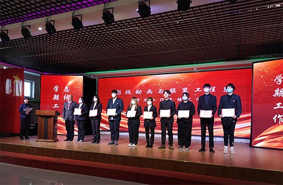 在过去的一学年,影视动画与服装系师生团结一致,努力拼搏,各项工作扎实、细致、优质、高效,取得了突出的成绩。李彤主任代表学院宣读了表彰决定:服装专业循环班获得“先进集体”称号;刘庆智、郭鑫遥等6名同学获得“三好学生”称号;王佳伟、王硕等7名同学获得“优秀学生干部”称号。