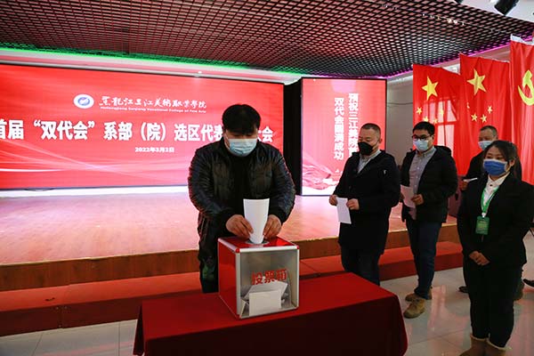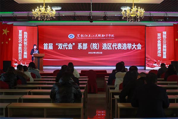 根据黑龙江三江美术职业学院首届“双代会”筹备工作委员会的工作部署,哈尔滨教学实习基地系部(院)选区于2022年3月2日召开教职员工大会,选举出席黑龙江三江美术职业学院首届“双代会”哈尔滨教学实习基地系部(院)选区的代表。学院院长王英海同志、党委副书记、副院长、“双代会”筹备工作委员会副主任王立革同志对会议进行指导,哈尔滨教学实习基地系部(院)选区全体教职员工参加了会议。哈尔滨教学实习基地系部(院)选区召集人朱振宇同志主持会议。