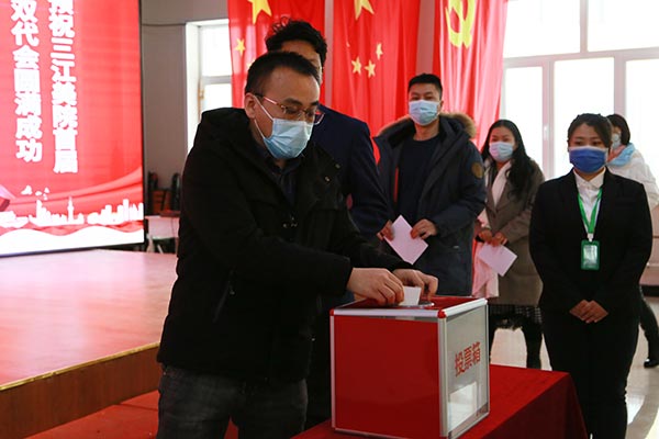 按照既定会议程序,首选由会议工作人员清点到会人数,符合会议法定人数。之后,由哈尔滨教学实习基地系部(院)选区召集人朱振宇同志宣读了《黑龙江三江美术职业学院首届“双代会”代表选举办法》,介绍了本选举单位候选人名额及构成比例情况。会议通过了选举大会总监票人、监票人和计票人名单,介绍了代表候选人基本情况。按照选票填写要求,参会人员本着客观公正的原则,投上了自己神圣的一票。最后,通过监票人、计票人紧张的计票工作,选举产生了哈尔滨教学实习基地系部(院)选区出席三江美院“双代会”代表大会正式代表的初步人选。