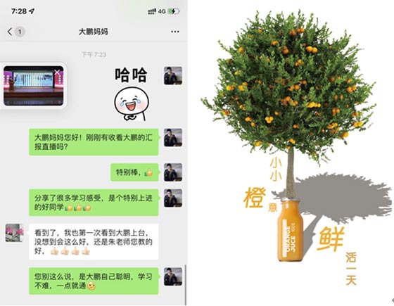 高大鹏同学的家长观看直播后与辅导员的互动及设计作品